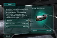“Modified twin plasma gun with maximum energy accumulation, consistently high firing frequency and range. Preferred weapon of Terran elite units.”