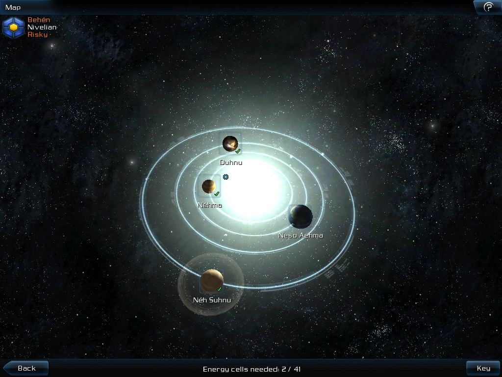 Behén is a Nivelian system with four planets. The system status is "Risky".
