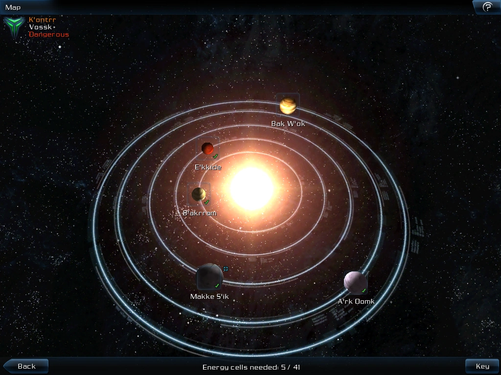 - K'ontrr is a Vossk system with five planets. The system status is "Dangerous".