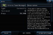 K'mirkk Toad Mutagen is a commodity that appears in the Supernova add-on. It is one of two that can destroy a ship should it be handled improperly.