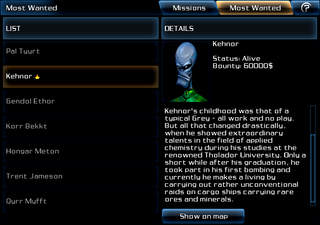 - Kehnor is the second criminal on the Terran Most Wanted board.