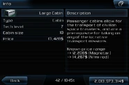 Up to ten passengers can be carried in a large cabin. This is the largest cabin available in the game. Cabins cannot be combined to form larger cabins, meaning that a pilot will have to settle with smaller cabins taking up multiple spaces if a larger one cannot be found. Since the most passengers requested to be ferried never go above 20, every passenger mission can be done with just two large cabins, although otherwise they should be removed in favor for other pieces of equipment.