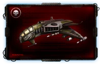 The Mantis is a very large ship. It is a pirate ship, and is one of the best ultimate ships. It has 4 primary weapon slots and 4 secondary weapon slots, similar to the Aegir, making it ideal for fighting. This ship is towards the mid-range compared to the other ultimate ships, being more expensive than the Veteran and Aegir, but cheaper than the S'Kanarr and the Nemesis.