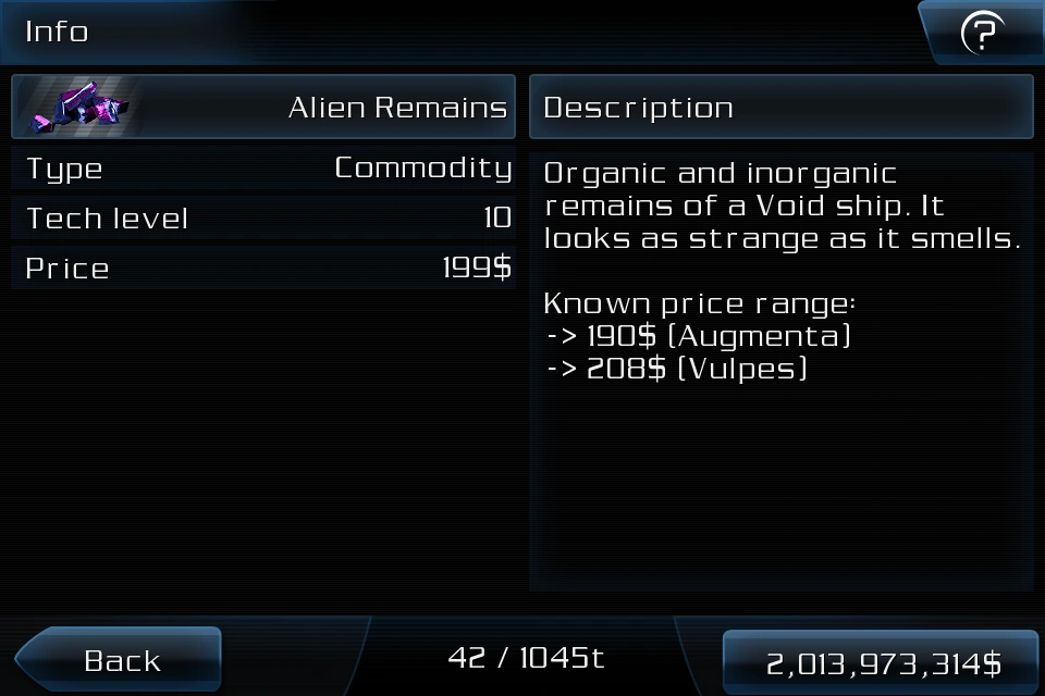 - Alien Remains cannot be sold until this mission is over so get a ship with with a moderate cargo hold. This matters the most in extreme as freight penalizes handling.