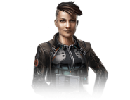 A tough, trained and tattooed Terran female in her mid-30s, Sunita “Sun” Khanna is Hayley’s senior by about 10 years. While the two never really got along in the academy, where Sunita was Hayley’s instructor, they now fly side by side under Bryce Vantok’s command in Nova Defense Services. Sunita’s offbeat-yet-stylish appearance sums up her many-faceted personality. While her skull tattoos and leather jacket represent the wild child in her, her military attire stands for the more controlled and pragmatic part of her character.