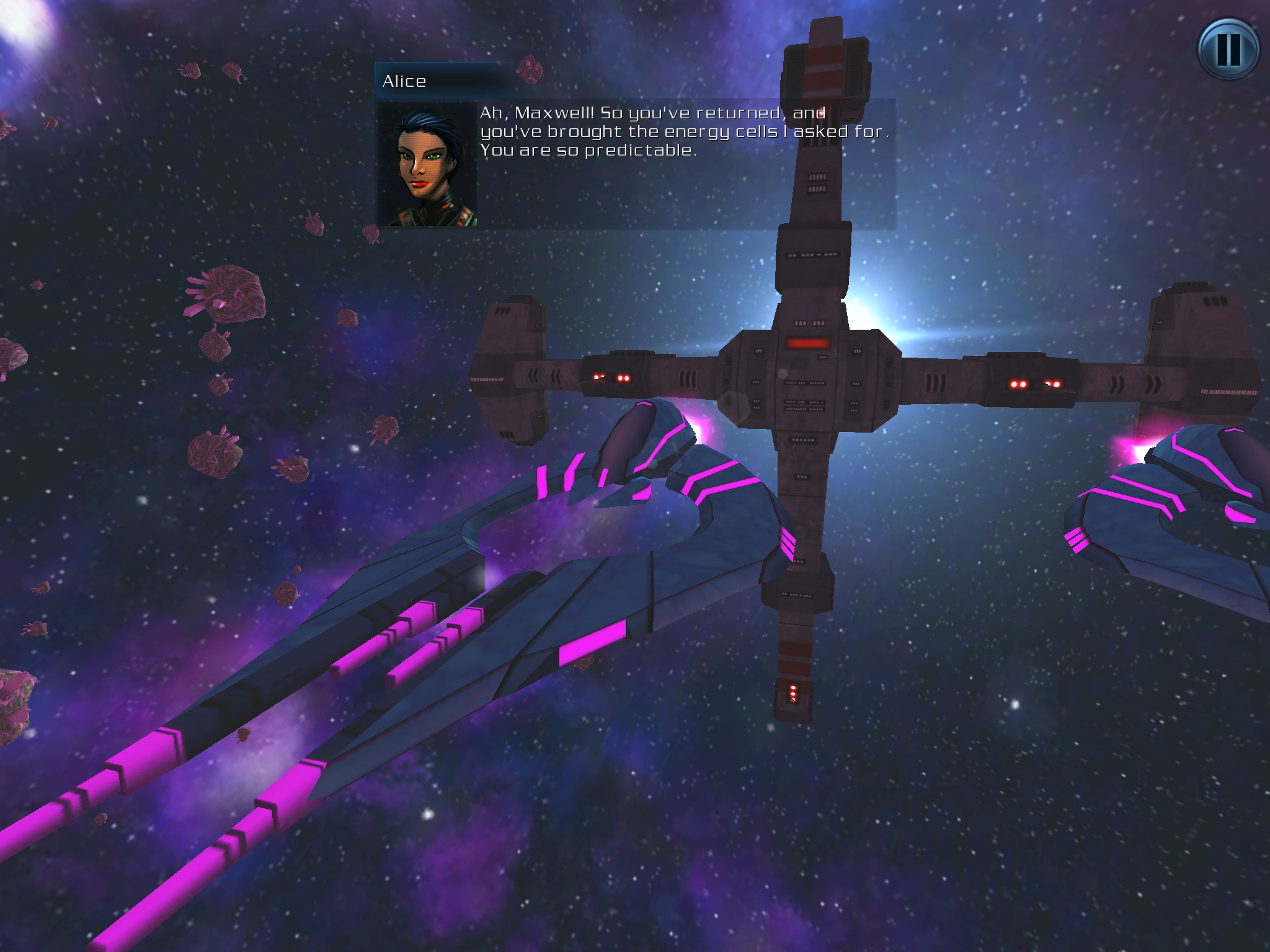 - Despite Alice saying "a thousand Energy Cells to get me out of here", the player does not actually have to collect 1000t Energy Cells and return to Void Space as the Terran fleet covered that already.