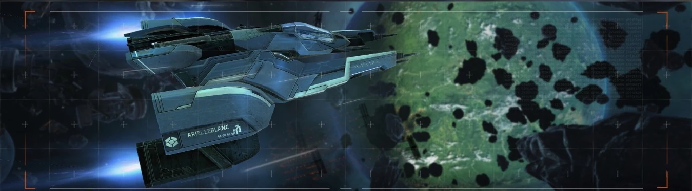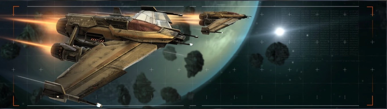 The main ship used by Manticore fighters. It's a solid scout build by Davilon and it's nimble. Handles well and tends to be reliable and fairly modular. I've always liked working on this ship. It's what makes up most of the hangar bays around here and for good reason. Also, the favorite ship of my late best friend, Hayley. She loved it.