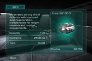 “Moderately strong shield deflector with improved auto-regeneration. Indispensable for longer missions and combat engagements.”